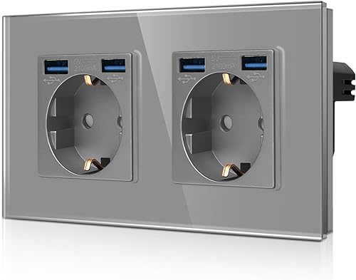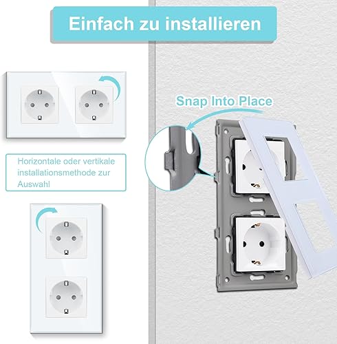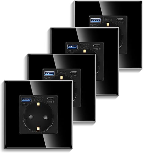 CNBINGO Einzelsteckdose mit 2× USB-Anschluss (20W Schnellladen) - 1× (Typ-C und USB-A) - Einfach Glas Schuko Steckdose Unterputz - Weiß Wandsteckdose mit Kindersicherung