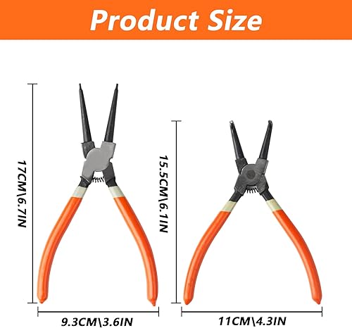 2 STK Sprengringzangen Set, Sicherungsringzange Set, Segeringen Zangen Set, Sprengringzangensatz, Sicherungsringzangen Set, 180mm gebogen/gerade Sicherungszange für Innen und Außensicherungen