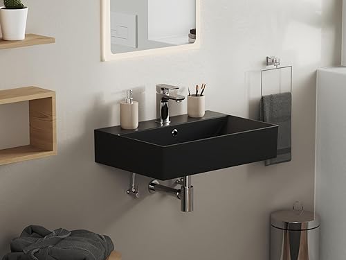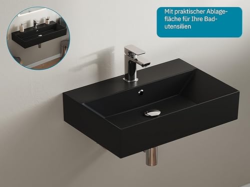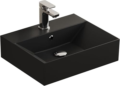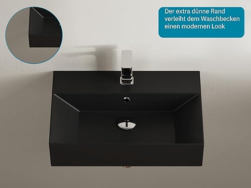 Aqua Bagno | Design Hängewaschbecken mit dünnem Rand, hochwertige Keramik, weiß, genormte Anschlüsse | 50 x 42 cm