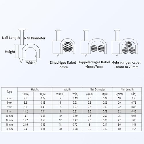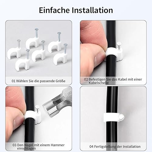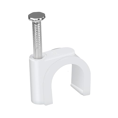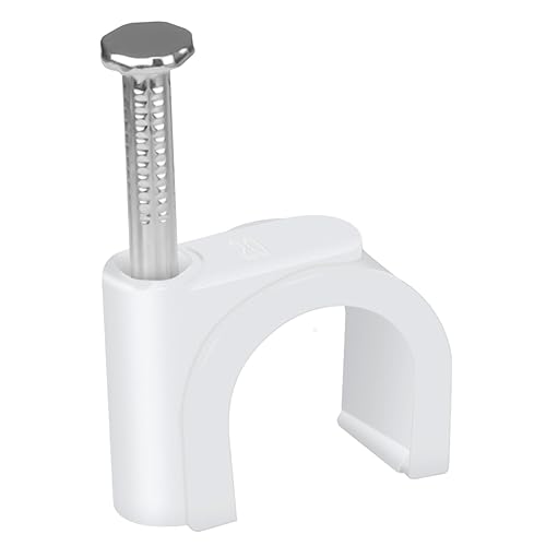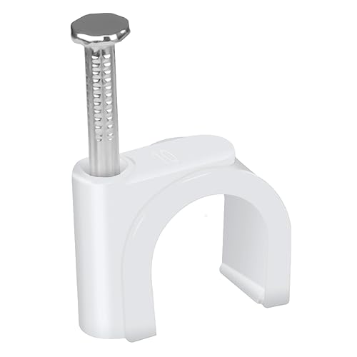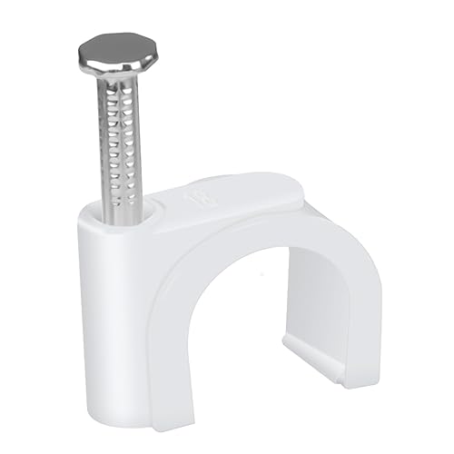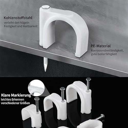 LeMotech 200 Stück Kabelklemmen 5/6/8/10mm Runde Kabelhalter Mit Eingestecktem Nagel Halterungen Kabelbefestigung Für Starkstromkabel Ethernet-Kabel Lautsprecherkabel, Weiß