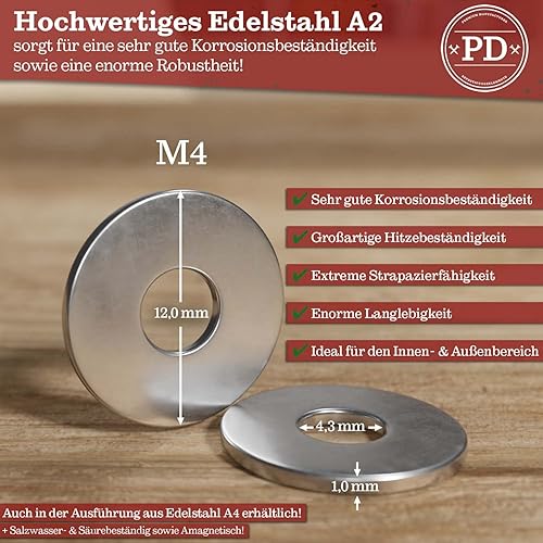 PD® große Unterlegscheiben M8 (DIN 9021 / ISO 7093) | Hochwertige A2 V2A Edelstahl Karosseriescheiben | Rostfreie Edelstahlscheiben Beilagscheiben mit großem Außendurchmesser | 25 Stück