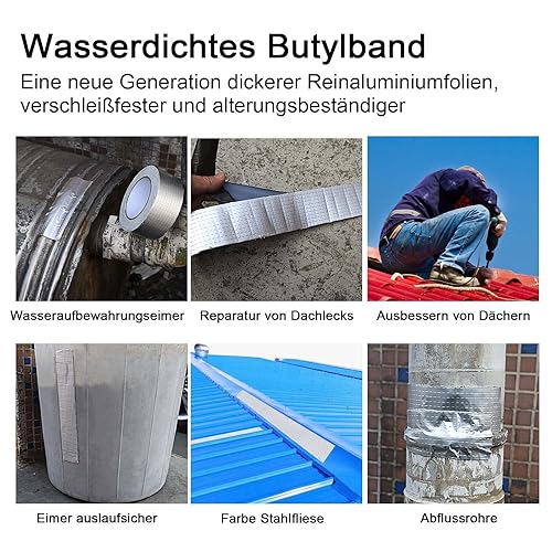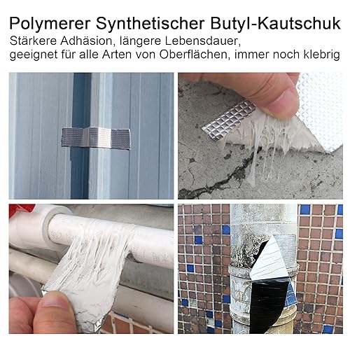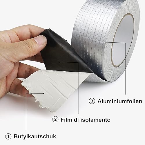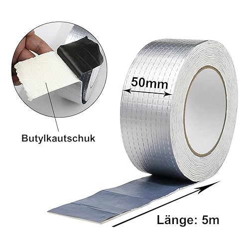 BOMEI PACK Butylband Wasserfestes Klebeband - 1.5mm x 50 mm x 5 m-Wasserdichtes Klebeband-Dichtband Leckagebeweis selbstklebend - -Unterwasser Klebeband - Aluminiumfolie Abdichtungsband