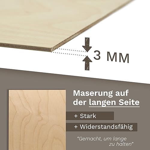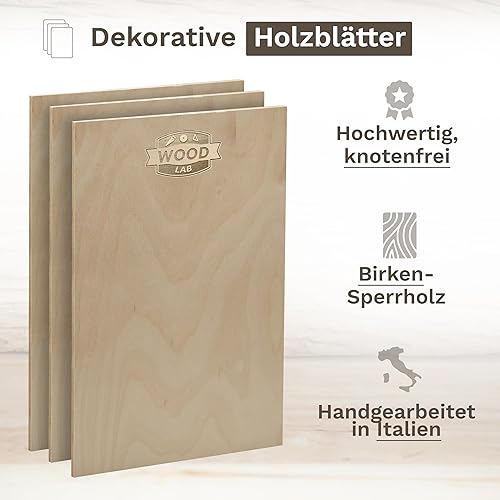 Wood Lab 30 x Sperrholzplatten aus Birkenholz, 3 mm (± 0,5 mm), 42 x 29,7 cm A3, Holz platte zum Dekorieren, Basteln, Papierarbeiten, Gravur
