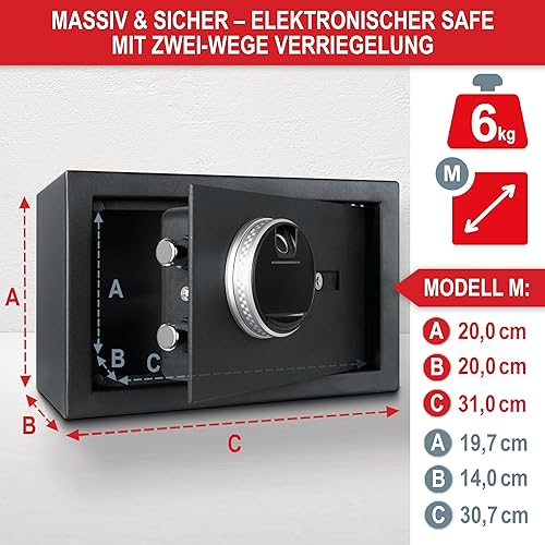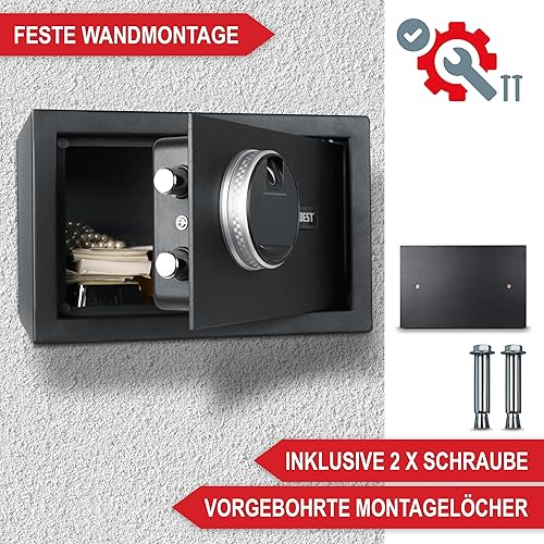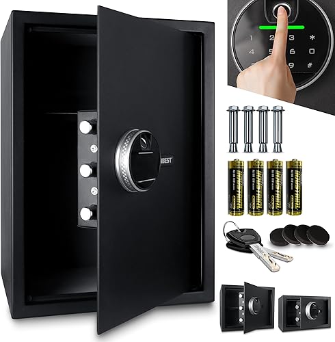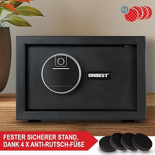 ONBEST elektr. Tresor, Safe mit Fingerabdruck, Zahlen code & Schlüssel – Safe aus Stahl mit 2 Schließbolzen – Geld, Wertsachen & Dokumente sicher verwahren – Möbel-safe 20x31x20 cm groß (M)