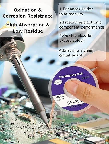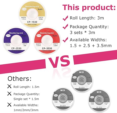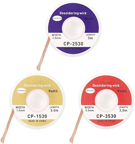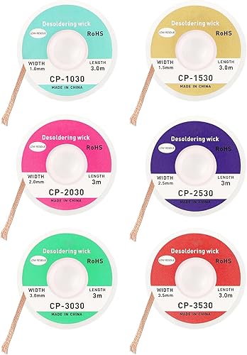6er Set Entlötlitze – 3m Kupfer Entlötdraht (1.0/1.5/2.0/2.5/3.0/3.5mm) | Ideal zum Entlöten und Entfernen von Lötzinn an Lötstellen | Hohe Wärmeleitfähigkeit Lötlitze