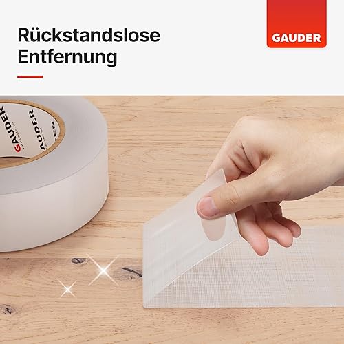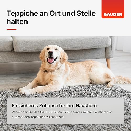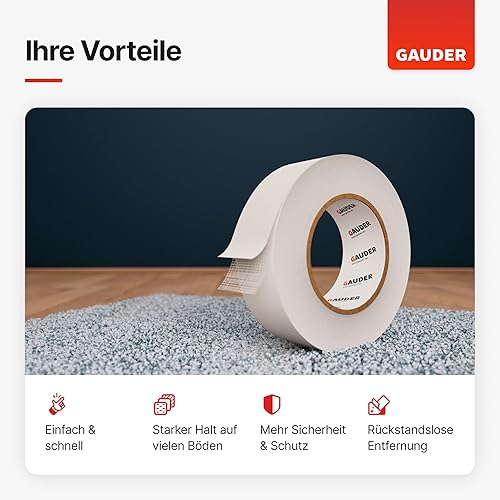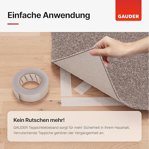 GAUDER Teppichklebeband (25 m) | Klebeband für Bodenbeläge, Treppenstufen und mehr | Teppichband doppelseitig für Renovierungsarbeiten