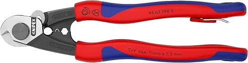 KNIPEX Drahtseilschere geschmiedet mit Mehrkomponenten-Hüllen, mit integrierter Befestigungsöse zum Anbringen einer Absturzsicherung 190 mm 95 62 190 T BK