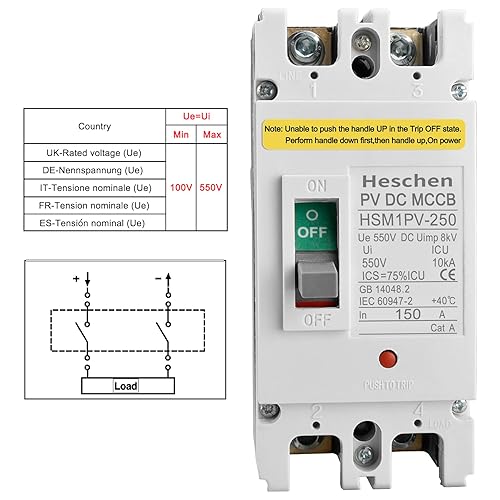 Heschen DC-Leistungsschalter MCCB, HSM1PV-250, 2-polig, DC550V 150A, Photovoltaik-Leistungsschalter, für PV-Solaranlage Solarmodule Netzsystem