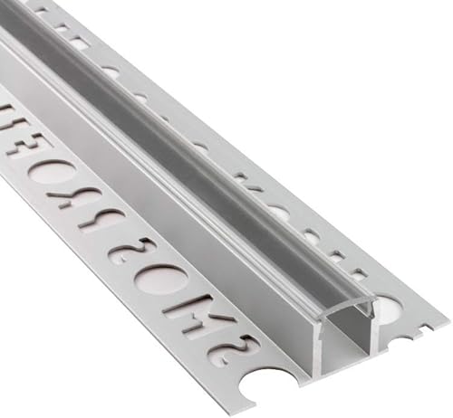 LED Aluprofil T77 Bordüre 12mm silber Fliesenprofil + Abdeckung Fliesen für LED-Streifen-Strip 2m klar