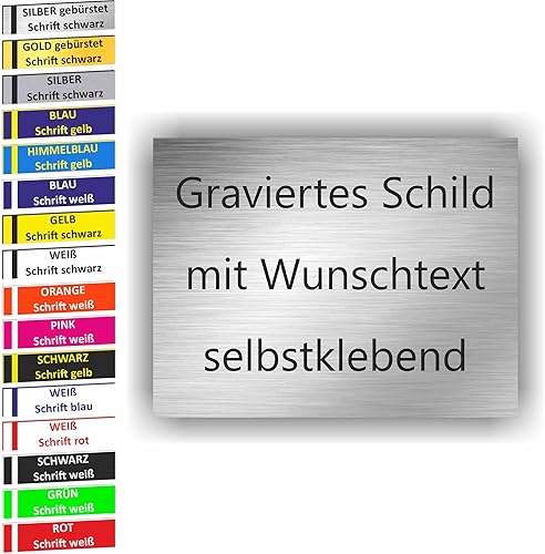 KIWISTAR UG - ab 1 Stück - Namensschild 100x60mm Briefkasten selbstklebend - silber schwarz - personalisiertes Klingelschild - Briefkastenschild - Türschild - mit Gravur - UV & wetterfest