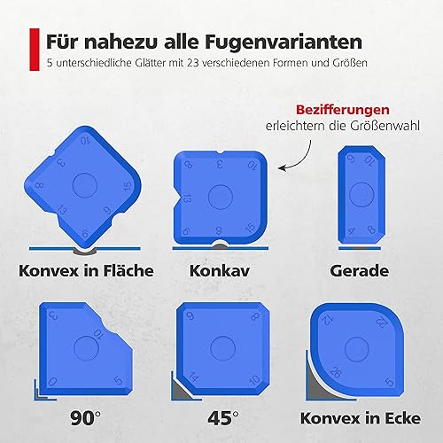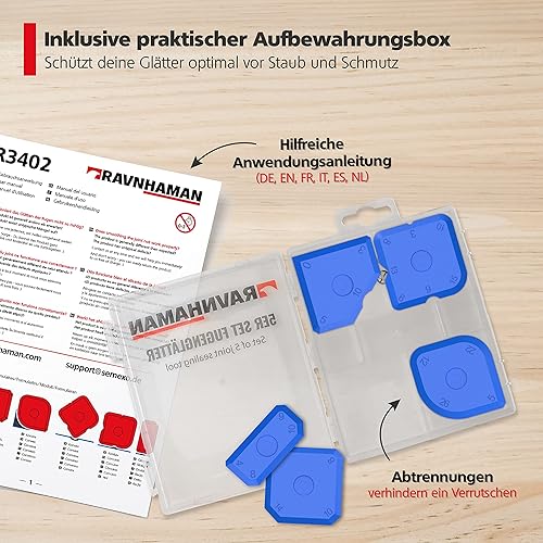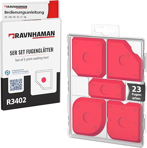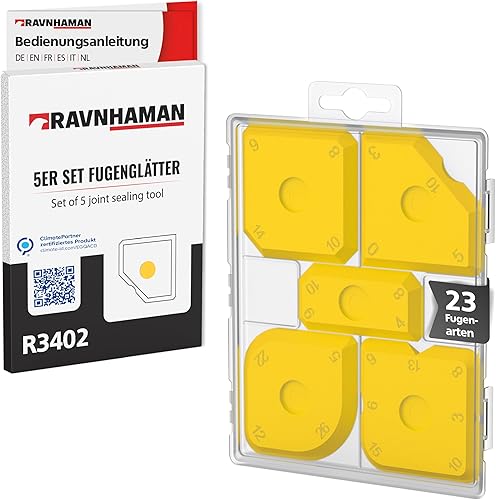 RAVN HAMAN 5er Set Fugenglätter Gelb - Fugenwerkzeug mit 23 verschiedenen Formen - Fugen-Spachtel zum Verfugen z.B. mit Silikon & Acryl - Fugenabzieher inkl. Aufbewahrungsbox