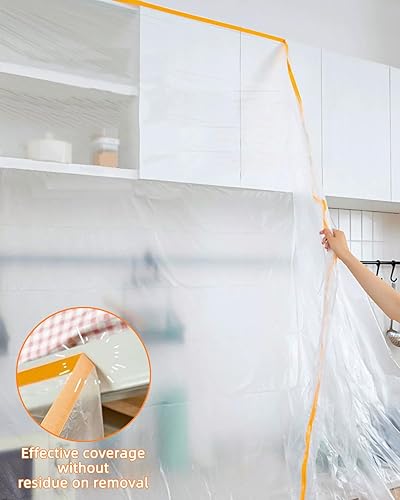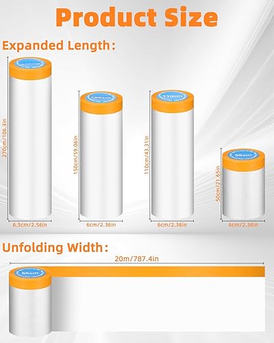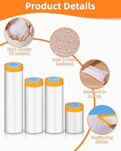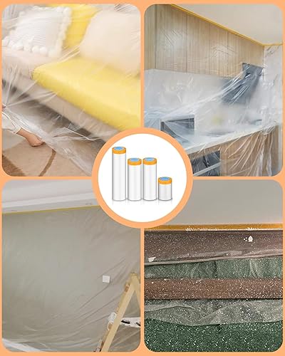 Cotepi 4 Rollen Abdeckfolie mit Klebeband, Transparent Abdeckfolie Selbstklebende Malerfolie Malerband, Selbstklebende Malerfolie mit Klebeband, Malerfolie Abdeckfolie (55cm, 110cm, 150cm, 270cm)