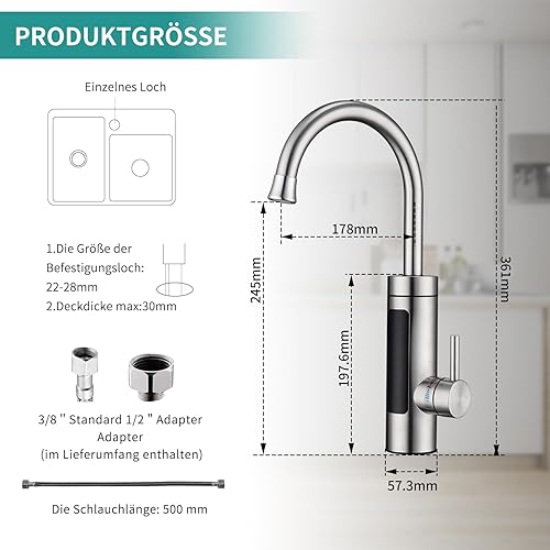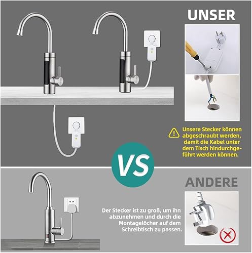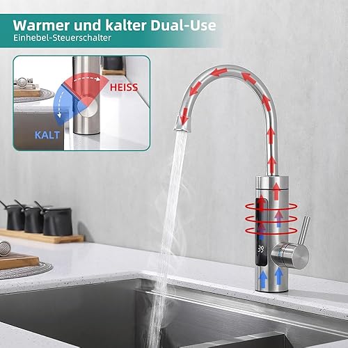 HOMELODY Elektrischer Wasserhahn mit Durchlauferhitzer 230V,Wasserhahn Küche Durchlauferhitzer Küche LED Elektrischer Küchenarmatur Edelstahl