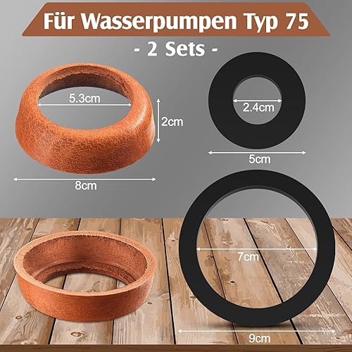 Photect 2 Sets Schwengelpumpe Ersatzteile Schwengelpumpe Dichtungssatz Typ 75 Leder Dichtungsset für Ersatzteile der Griff Pumpe O Ring Dichtung und Kolbenmanschette für Pumpe Dichtung