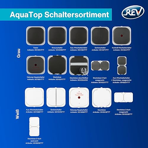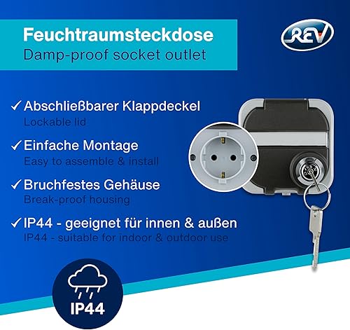 REV AquaTop, Feuchtraumsteckdose, IP44, Steckdose abschliessbar, einpolig, Aufputz, grau