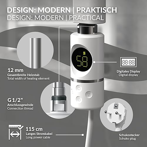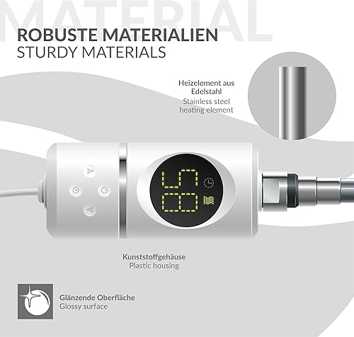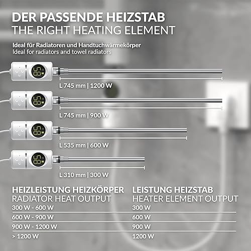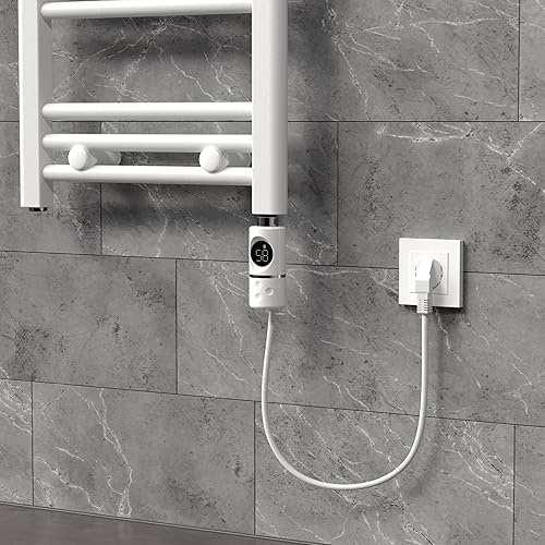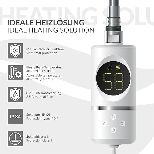 ML-Design Heizstab 600W Weiß mit Thermostat und LCD Bildschirm, Elektronischer Temperaturregler und Timing-Funktion, Heizpatrone Heizelemente für Badheizkörper Heizungen, Elektroheizstab mit Stecker