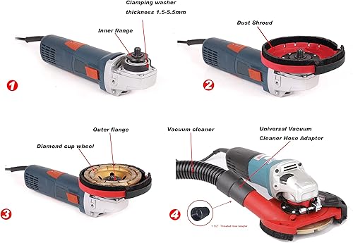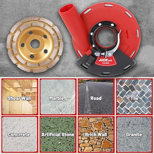 Aidelife Absaughaube für Winkelschleifer 115/125mm + Diamantschleiftopf 125mm x 22,2 mm für Beton