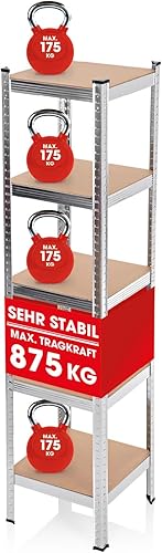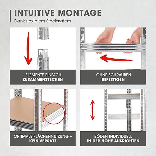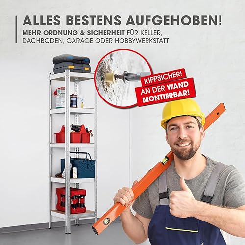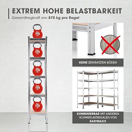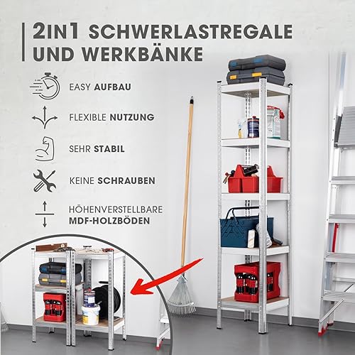 EASYmaxx Schwerlastregal 40x40x180 cm | 875 kg Traglast, 175 kg pro Ebene | Regal und Werkbank | Kellerregal, Lagerregal mit 5 verstellbaren Ablagen | Für Keller, Garage, Hobbyraum, Werkstatt