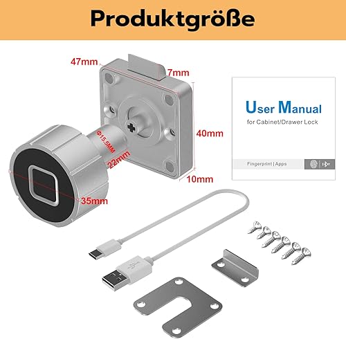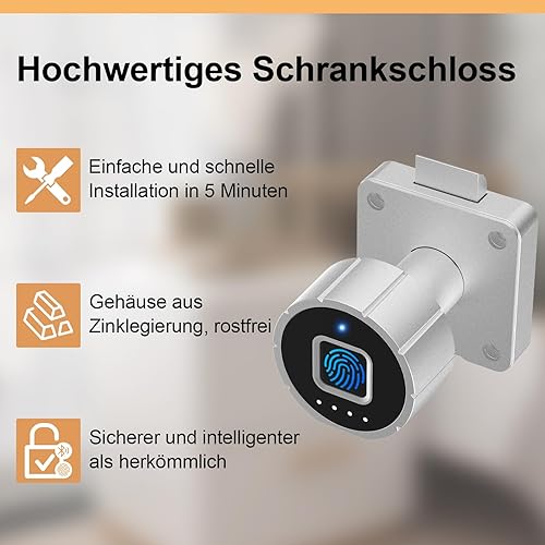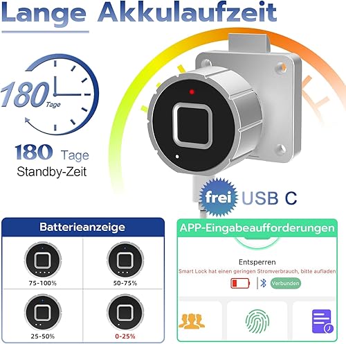 Fingerabdruck Schloss, Eseesmart Briefkastenschloss mit APP Fingerabdruck, Elektronisches Schrankschloss mit 3 Schließzunge, Schubladenschloss für Spind Möbel 20mm