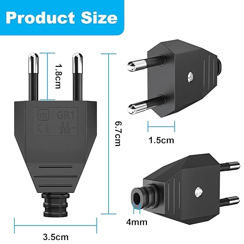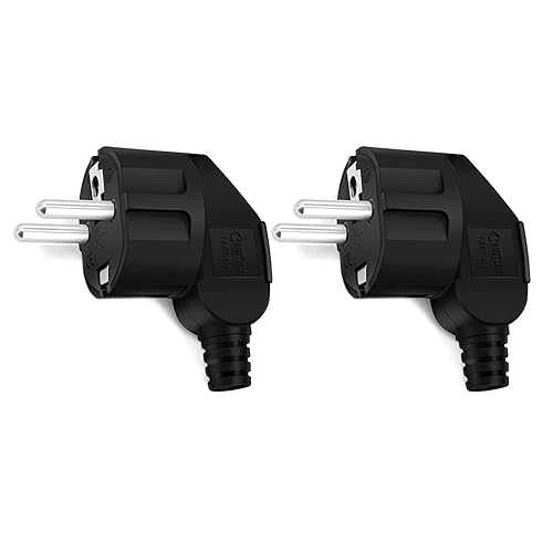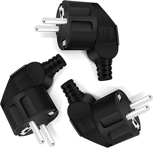 Schuko Stecker Winkelstecker 3 Stücke, Stromstecker Winkelstecker 230v flach, Schutzkontakt Stecker mit Knickschutztülle, Eurostecker für 8-10mm Kabel, IP20, Langlebig und Bruchfest, Schwarz