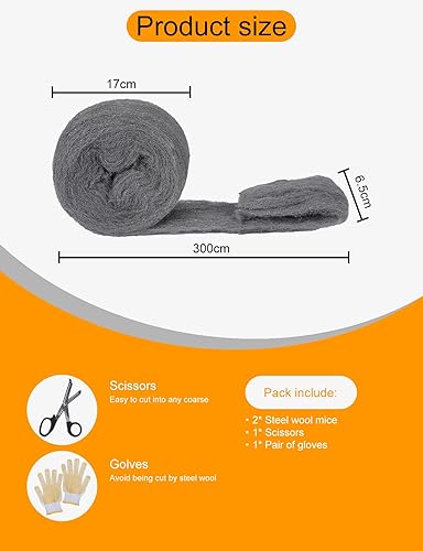 Awroutdoor Stahlwolle DIY Gegen Mäuse, 2 Stück Stahlwolle Gegen Mäuse Stahlwolle DIY Mausefalle mit Arbeitshandschuhen Schere, Fein Gegen Nagetiere Steel Wool, Stahl Wire Wolle für Haus Garten Garage