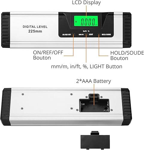 Neoteck Wasserwaage Digitaler LCD Wasserwaage Magnetisch 225mm Aluminium Winkelmesser mit LCD-Display, Audioanzeige, 4 Einstellmodi Neigungsmesser