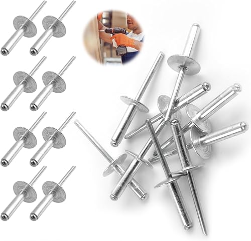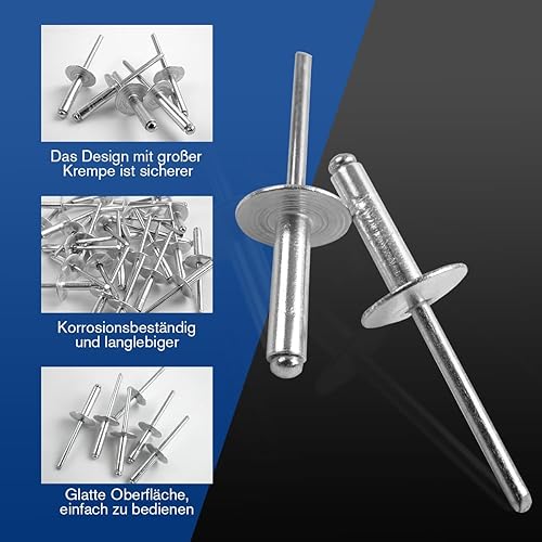 60 Stück Aluminium Blindnieten mit großem Flansch, Blindnieten Alu Nieten, Blindnieten Set, Blindnieten in Industrie-Qualität, 60er-Pack (Silber) (4.8mm × 12mm)