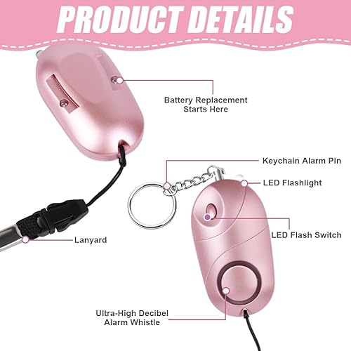 flintronic Persönlicher Alarm 140 dB, 2PCS Selbstverteidigungsalarm mit LED-Licht und Schlüsselanhänger, Taschenalarm Schlüsselanhänger Alarm für Frauen, Kinder, Nachtschicht (Schwarz+Rosa)
