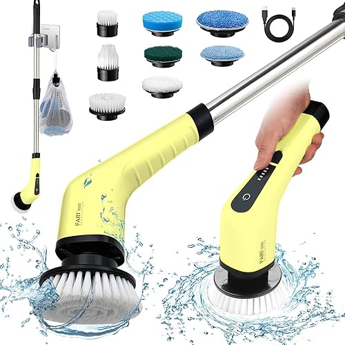 Elektrische Reinigungsbürste, FARI Duschreinigungsbürste mit 8 Austauschbaren Bohrbürstenköpfen, Kabelloser Schrubber mit Verstellbarem Griff, Bad- und Duschreiniger