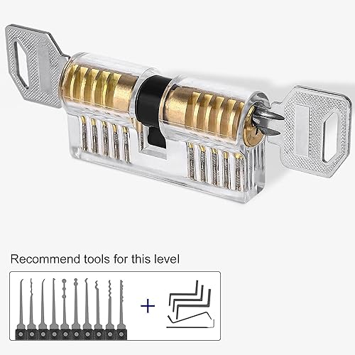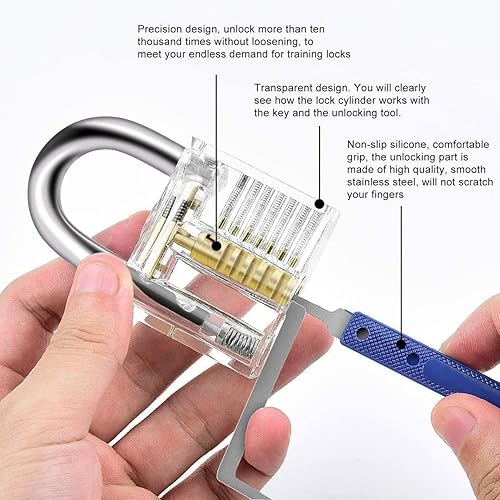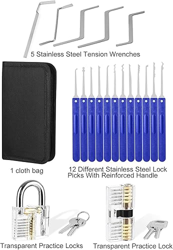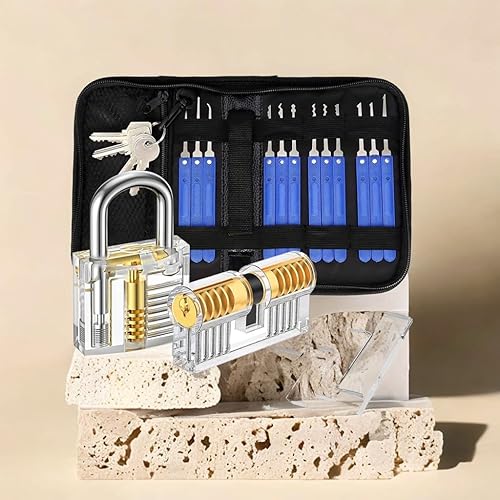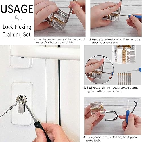 XFLY 35 Stück Lockpicking Set, Dietrich Lockpicking Set Profi mit 3 Transparentem Trainingsschlössern Kreditkartenformat & Anleitung für Schlosserei, Anfänger und Profisrleicht