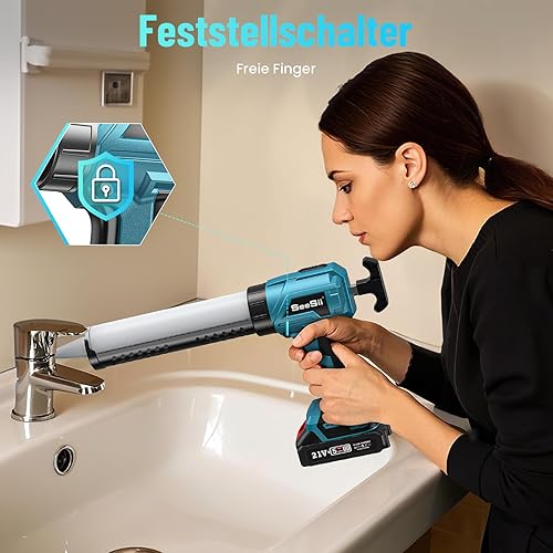 Seesii Akku Kartuschenpresse Kompatibel mit Makita 18V, Akku Kartuschenpistole mit 2000mAh, 4 Geschwindigkeiten,Elektrische Silikonpistole, Akku Silikonpistole für 300ml-Kartuschen (300 ML)