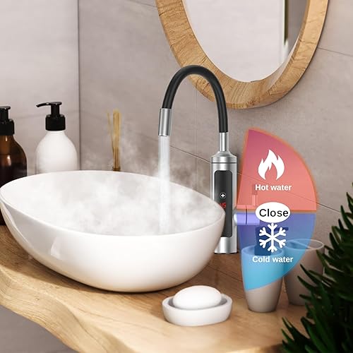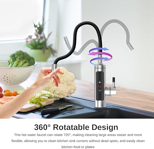 Wasserhahn mit Durchlauferhitzer, 3000W 360° Küchenarmatur Armatur Elektrischer mit LCD Temperaturanzeige Flexibler Auslauf Temperaturanzeige für Küche