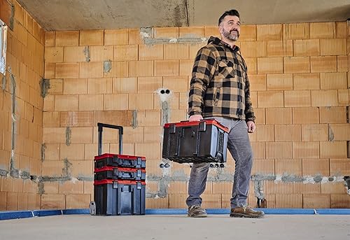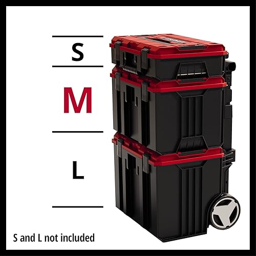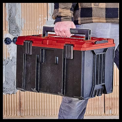 Original Einhell E-Case M Systemkoffer (max. 90 kg, universelle Aufbewahrung und Transport von Zubehör und Werkzeug, stapelbar, verknüpfbar)