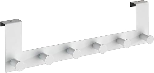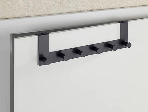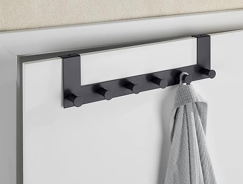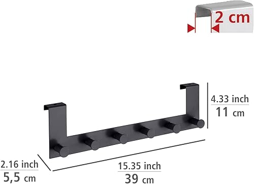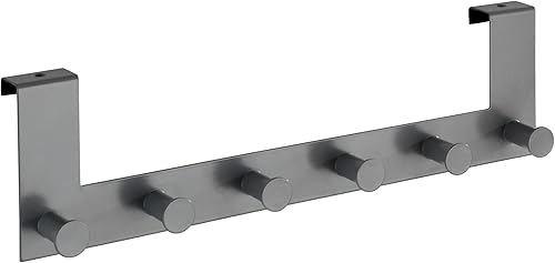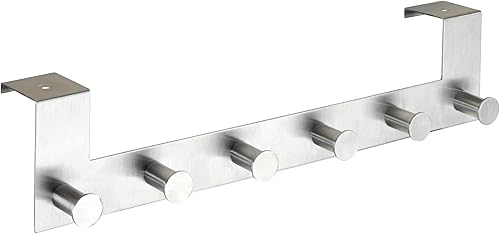 WENKO Türgarderobe Mod. Celano, Handtuchhalter für die Tür in Bad und Küche, Garderobe mit 6 Haken, rostfreier Edelstahl, 39 x 11 x 5,5 cm, Silber matt