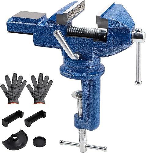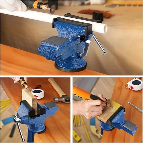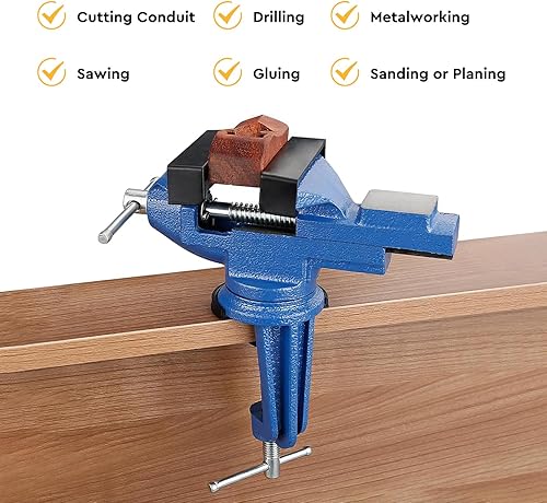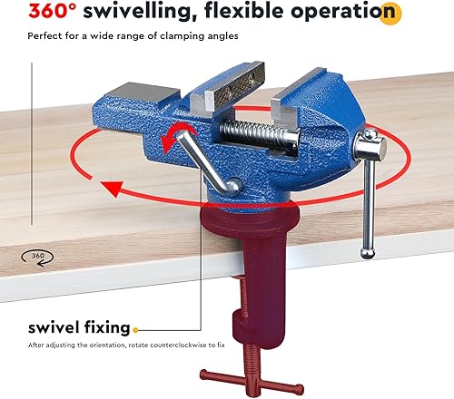 SWAWIS Schraubstock Klemmbar, Breite der Backe: 75 mm,360° Schraubstock Drehbar, Kann zur Befestigung von Teilen wie Ho lz und Metall