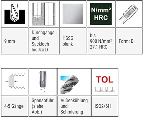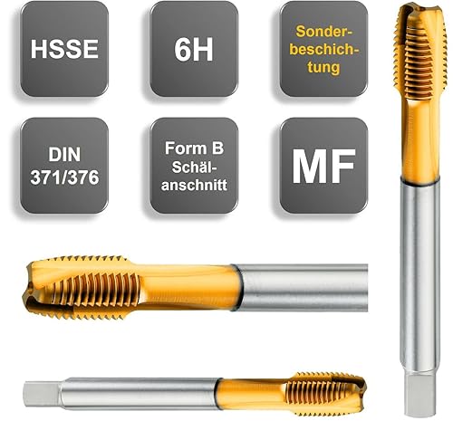 HSSE Maschinengewindebohrer Gewindebohrer Gewindeschneider Metrisches Feingewinde MF Sackloch/Durchgangsloch Sonder Beschichtung Made in Germany (mit Spirale 40° Form C, M8x1)