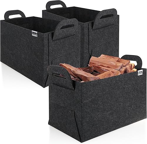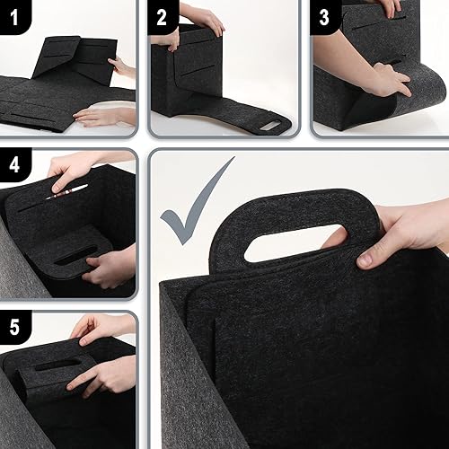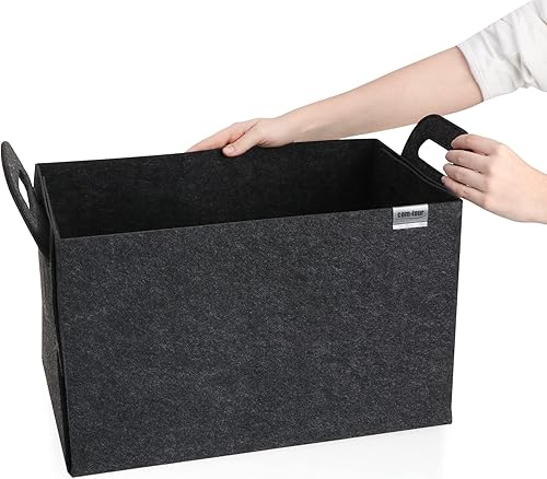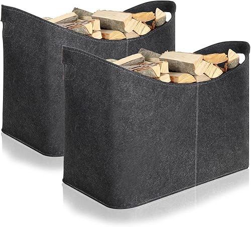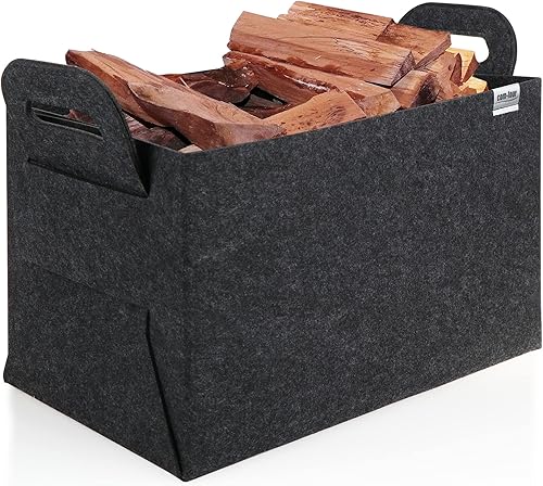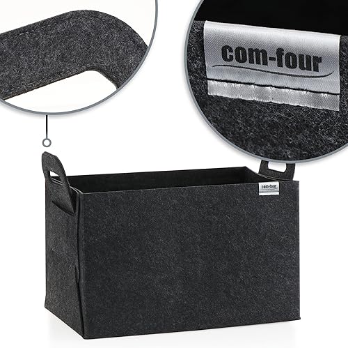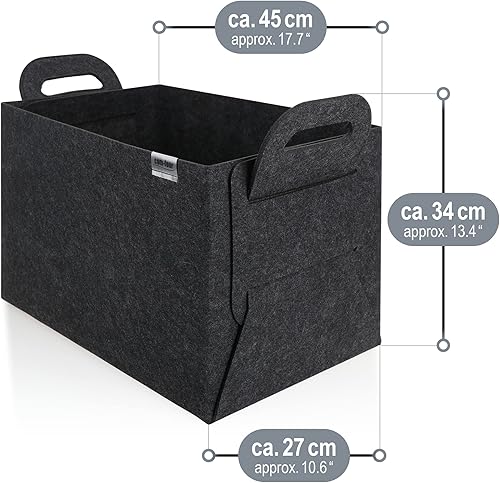com-four® 2X Filz-Tasche XXL für den Einkauf, Zeitungen, Papier, Spielzeug, Picknick oder Strand, robust aus dickem Filz, perfekte Kaminholz-Tasche für Brennholz (02 Stück anthrazit 44x30cm)