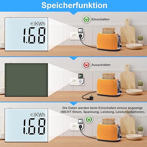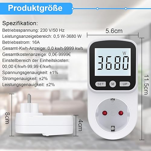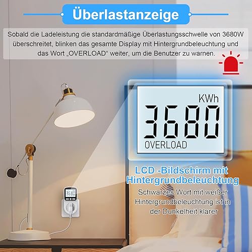 Stromzähler für Steckdose Stromverbrauchsmesser Steckdose 8 Modi, Strommessgerät Steckdose Energiekostenmessgerät Hintergrundbeleuchtung Großes LCD KWH Watt Energiemessgerät Leistungsmesser Steckdose