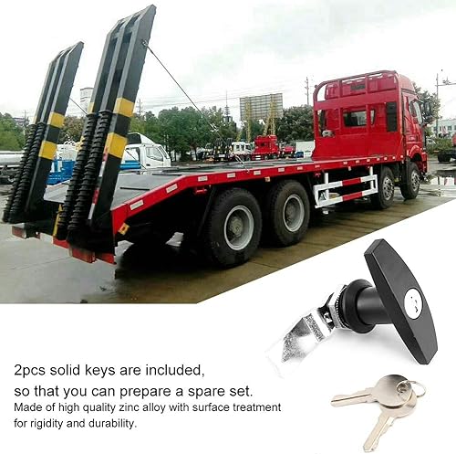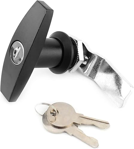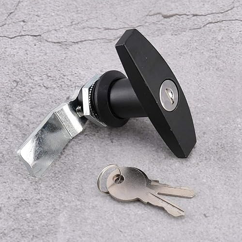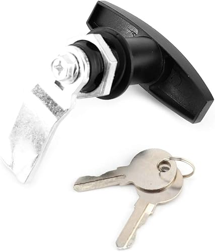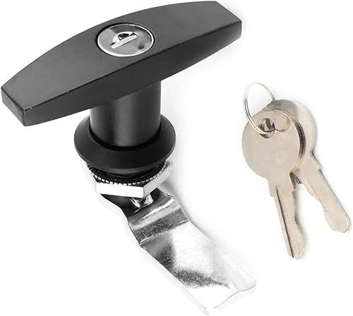 T Griff Schloss, Hintere Befestigung T-Griff-Schloss Werkzeugkasten Garagentorschloss mit Schlüsseln für Wohnwagen Anhänger Vordach Chrom glänzend (BLACK)