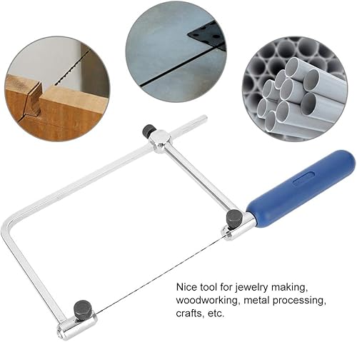 Handsäge Sägerahmen Juweliersäge, Holzbearbeitungssäge Laubsäge Einstellbarer Schneidwerkzeug Bundsägen Sägebügel mit 6 Spiralsägeblättern für Holz Holzbearbeitung Glas Metall