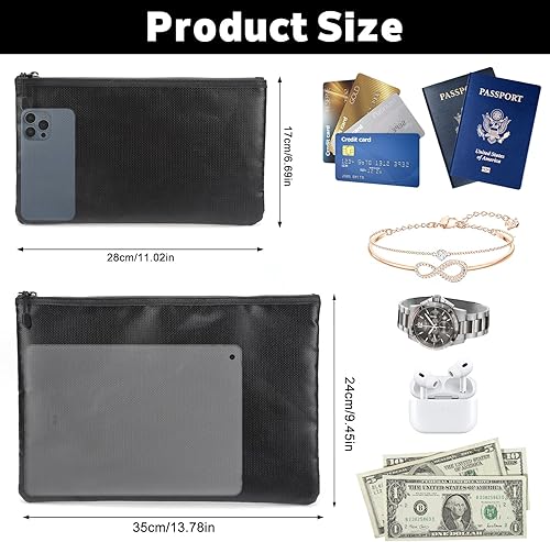 Feuerfeste Dokumententasche A4/A5 2er Set(35x24cm,28x17cm),Feuerfeste Geldkassette, Geldkassette Feuerfest Wasserdicht,Feuerfeste Tasche für Reisepass,Bargeld Bankkarte und Wertgegenstände