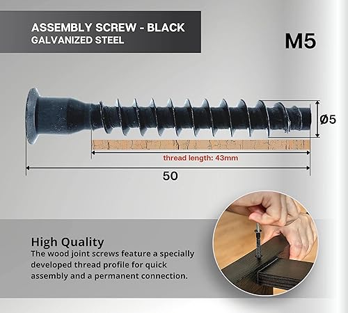 DOJA Barcelona | Montageschrauben-Verbindungsschrauben für Möbel | PACK 50 SCHWARZ 5x50 | Moebel verbindungsschrauben | Moebelbauschraube | Möbelverbinder Schrankverbinder/Flachkopfschrauben Holz/
