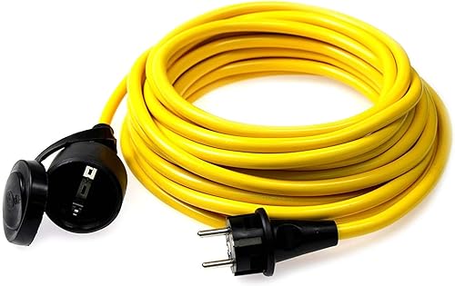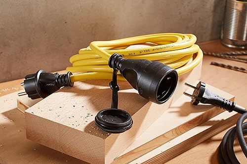 as - Schwabe Verlängerungskabel 5 m – 230 V, 16 A Schutzkontaktstecker – Outdoor Stromverlängerungskabel – Verlängerung für Außenbereich – K35 AT-N07V3V3-F 3G1,5 - IP44 - Made in Germany, Gelb, 60350