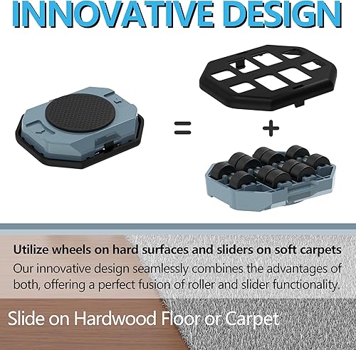 Der Innovative Möbelheber und möbelgleiter für schwere Möbel, mit Höhenregler, einfaches Bewegen Schwerer Gegenstände auf Hartholzböden und Teppich (Orange)