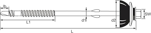 SawTec 111353 Eternitschraube 6,5x130 duplexbeschichtet mit Bohrspitze & Regenhut, Edelstahl