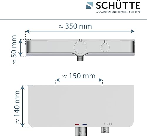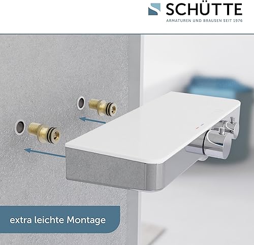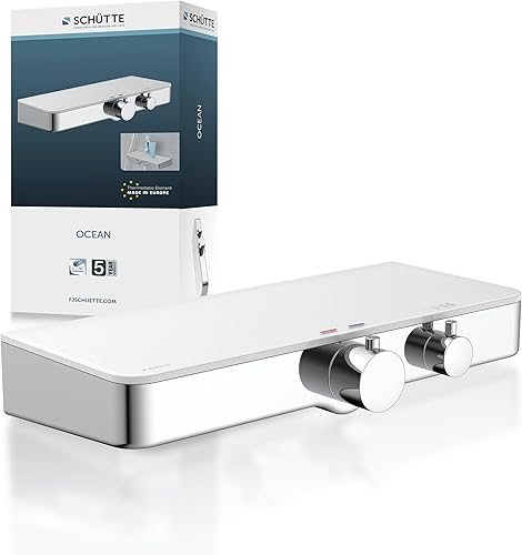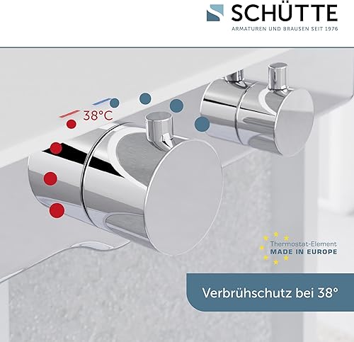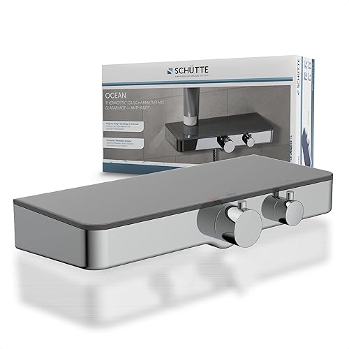 Schütte 60536 Ocean Thermostat Duscharmatur Set, Mischbatterie Verbrühschutz bei 38 Grad, Armatur Einhebelmischer Dusche mit Ablage aus Sicherheitsglas, Grau, Anthrazit