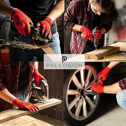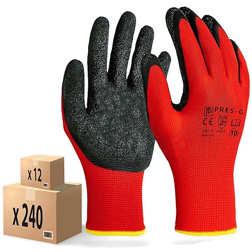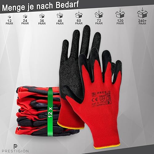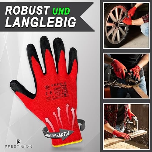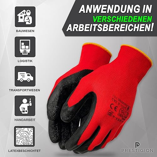PRESTIGION Arbeitshandschuhe Herren Größe 10-XL (24 Paare) - Latex Handschuhe Arbeit - Abriebfest - Ideal für die Baustelle und Heimwerker oder den Garten