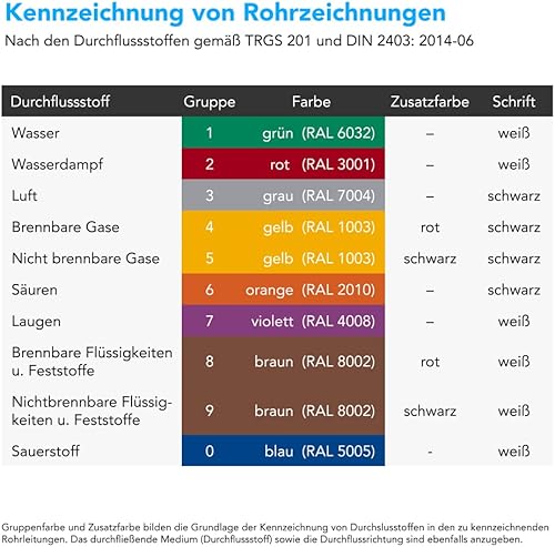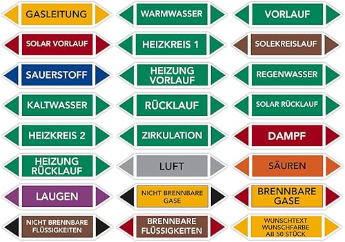 Fassbender-Druck Warnzeichen Rohrleitungskennzeichnung - Fließrichtung Rohrleitungskennzeichen mit beiden Ecken nach TRGS 201 und DIN 2403 (Kaltwasser - FL-110-20 Stück)