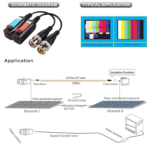 UHPPOTE HD TVI/CVI/AHD Video-Erdungsschleifen-Isolator Balun über verdrillte Paare für CCTV-Kamera