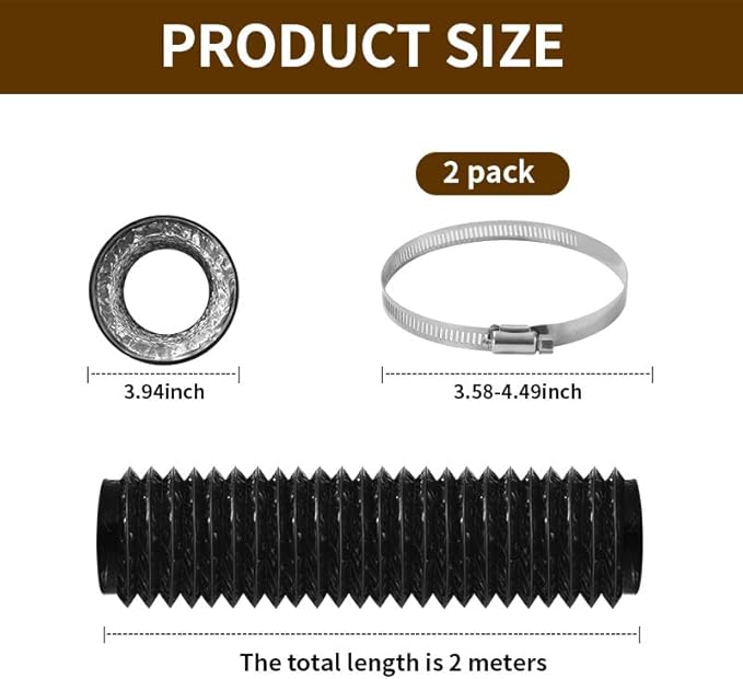 100mm PVC Abluftschlauch Länge 2.5m,Alurohr Schlauch,Lüftungsschlauch,mit 2 Schlauchschelle Edelstahl,Für mobile Klimaanlagen, Trockner, Abluftventilatoren und LüftungskanalSysteme